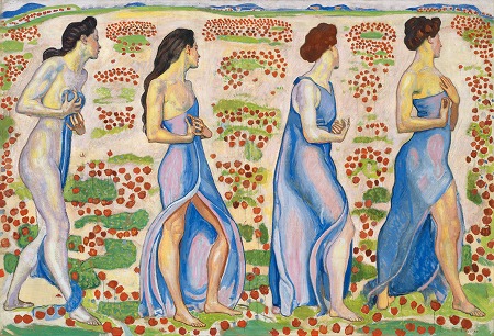 20世紀への転換期をさかいに、ホドラーは「死」よりも「生」のイメージ、とくに人々の身体が織りなす「リズム」の表現に向かいます。