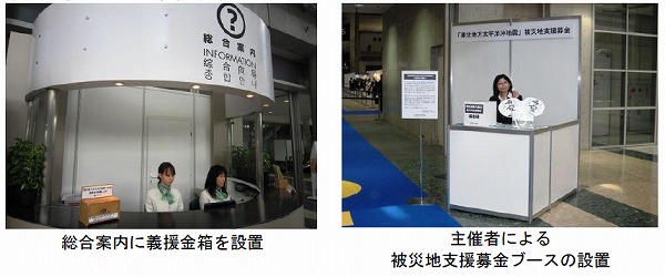 また、総合案内所等における義援金箱や、イベント主催者による被災地支援募金ブースも設置されています。