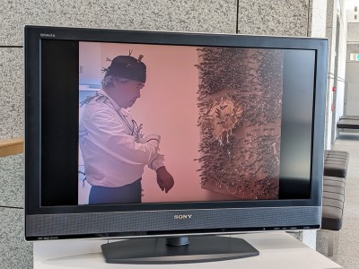 3階ロビーでは、中西夏之の制作風景がビデオで見られる