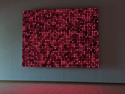 これに対し宮島は、光る数字の明滅という最小の運動によって、観る者を内奥へと導く。沈黙のうちに時間の流れを意識させ、自省を促し、他者との関係性を思索させる。UJINOが外部へと拡散する作風だとすれば、宮島は内側へと沈潜する思考へといざなうタイプの作家である。両者はいずれもテクノロジーを媒介としながら、人間的な感覚や思想へと接続している。