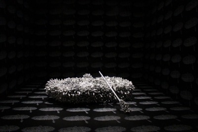 水玉も同様である。大小無数の水玉が画面や空間を覆うと、中心は失われる。鑑賞者でさえ特定の一点に視線を定めることができず、全体のなかへと取り込まれる。草間はこれを「自己消滅」と呼んだ。自己を拡張して世界を見渡すのではない。自己を無限に拡散させ、世界との境界を解体し、宇宙の一部へと溶解させる。