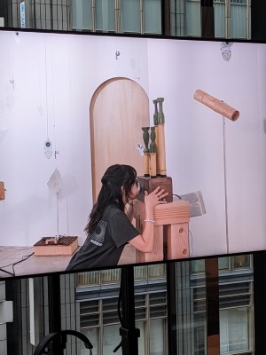 作家は多様な環境で多様な言語とともに時間を過ごした経験を持つ。そこで得た洞察をもとに、声を出すこと・音を聴くことに関する作品を制作・発表する。ブースでは息を吹きかけて音を出す独自の楽器を展示していた。実際の音を聞くことはできなかったが、大変に興味深い取り組みだ。