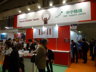 MADE IN BY JAPANコーナー内に設置された、中小機構の「SEKAI KIZUNA」ブース。海外進出を考える企業と、海外バイヤーとのビジネスマッチングの機会を創出。海外との「絆」つくりを支援した。
