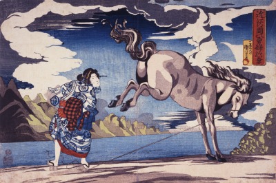 歌川国芳(一勇斎)≪近江の国の勇婦於兼≫ 天保2-3年頃(C.1831-32)、横大判、多色木版 ※前期のみの展示