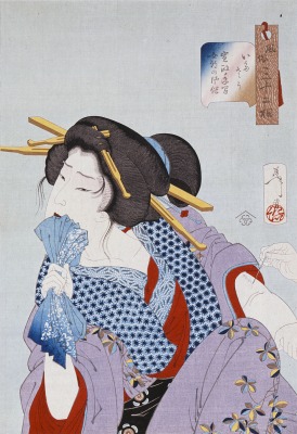 月岡芳年(大蘇)≪風俗三十二相 いたさう 寛政年間 女郎の風俗≫、明治21年(1888)、大判、多色木版、横浜美術館蔵 [山村行輝氏寄贈]