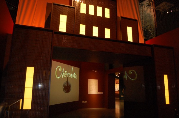 プロローグ部分。チョコレートで作られた科学博物館の外観がお出迎えです。近づいてみると、板チョコがびっしり。甘い香りも漂います。