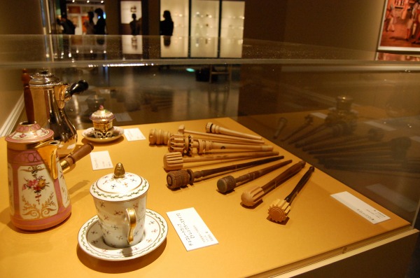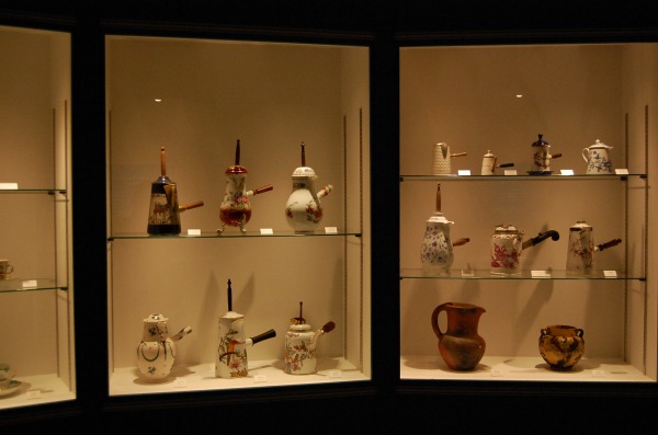 カップやポットなど、チョコレートを飲むための道具のコレクション。