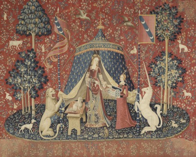 《貴婦人と一角獣》は、西暦1500年頃の制作とされる6面の連作タピスリーで、19世紀の作家プロスペル・メリメやジョルジュ・サンドが言及したことで、一躍有名になった作品です。