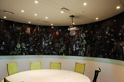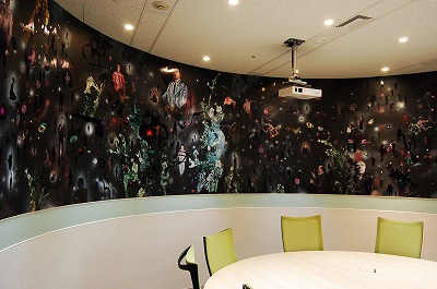 作品はプレスルーム(取材対応会議室)の壁面に設置されていますので、取材を受けたときの掲載記事にも、取材者の背景などに作品が露出することになり、アーティストにとっても大きなメリットとなります。